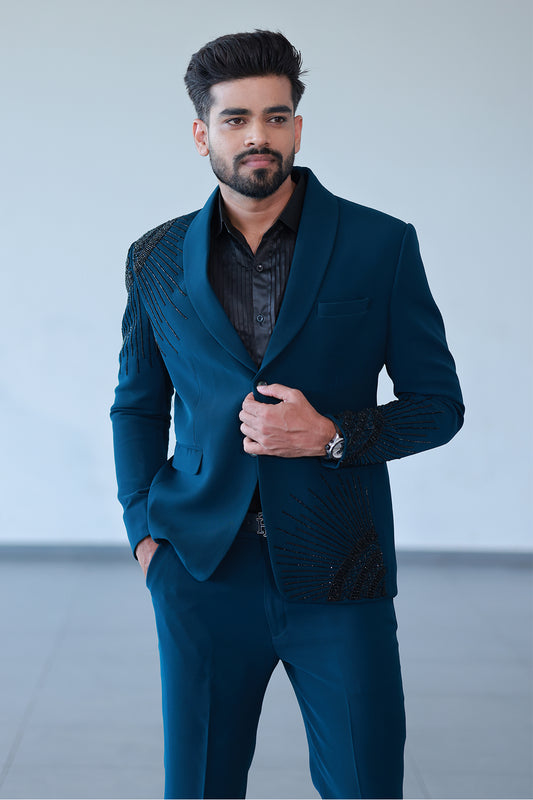 Midnight Majesty Peacock Blue Suit
