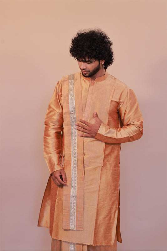 Orange Kurta, Lungi & Shawl Combo for Men
