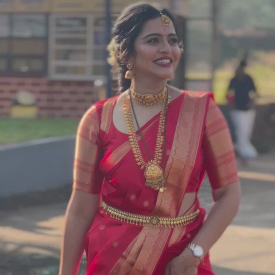 Embrace timeless elegance with this exquisite Red Silk Saree, crafted for weddings, traditional ceremonies, and festive celebrations. Woven in rich silk with classic gold zari detailing, this saree reflects heritage craftsmanship and graceful luxury.